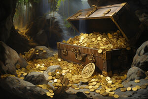 Есть сундук с сокровищами, прикованный к потолку на два навесных замка.